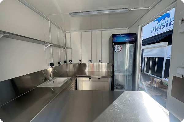Un food truck mobile, équipé 100% inox, groupe froid intégré, frigo vitré, évier, installation électrique. Ce projet ? Réalisé de A à Z par Océanic Froid, pour un client pro à Saint-Joseph.
