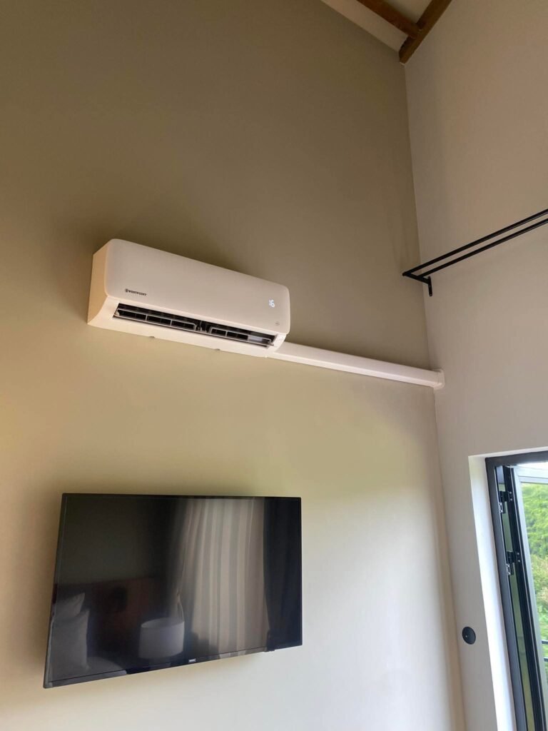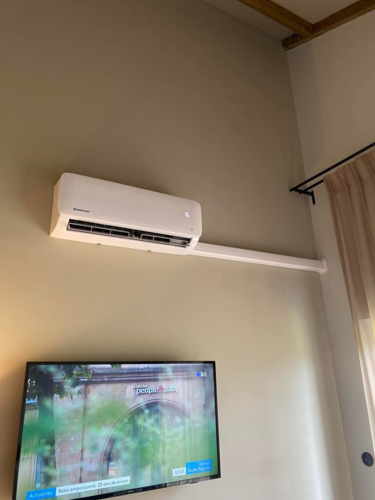 Installée discrètement dans un plafond, la cassette diffuse l’air de manière homogène dans toute la pièce. C’est une solution esthétique et efficace, particulièrement adaptée aux bureaux et commerces.
